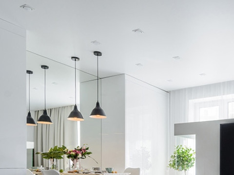 Главная особенность, которой отличаются бесщелевые потолки, – это способ их монтажа. Он предусматривает такой тип крепления, когда на стыке со стенами не возникает щелей. Такие потолки изготавливаются из пленки ПВХ или синтетических волокон различного цвета и фактуры. Это означает, что вы можете подобрать глянцевый или матовый натяжной потолок, отдать предпочтение стандартному белому варианту или установить полотно с рисунком. Еще одним преимуществом станет то, что бесщелевые потолки не требуют установки карнизов или каких-либо декоративных вставок для маскировки щелей. Это позволяет ускорить процесс монтажа и сэкономить деньги.