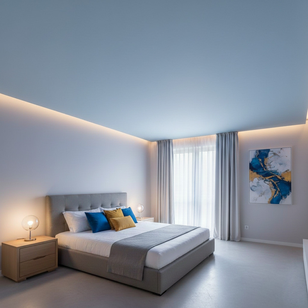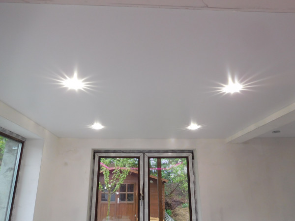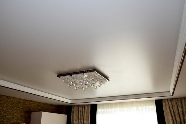 Они смотрятся так же надежно и прочно. Кроме того, в натяжные потолки можно встроить систему освещения (точечные светильники, звездное небо), установить карниз со скрытой подсветкой, люстру, трековые лампы. Подходят как для низких, так и для высоких стен.