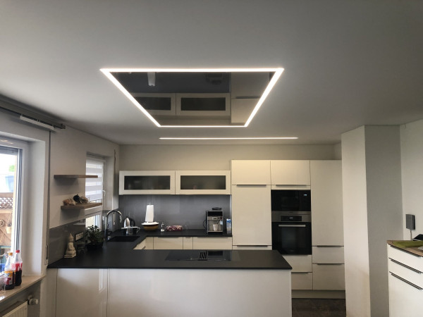 Посмотрите примеры наших проектов в Краснодаре. Мы изготавливаем конструкции любой сложности для спальни, в мансарде, даже в офисах и других помещениях. В том числе многоуровневые покрытия (потолки с несколькими ярусами), с теневыми и бесщелевыми профилями (без маскировочной ленты) из ткани и ПВХ (материал дешевле).