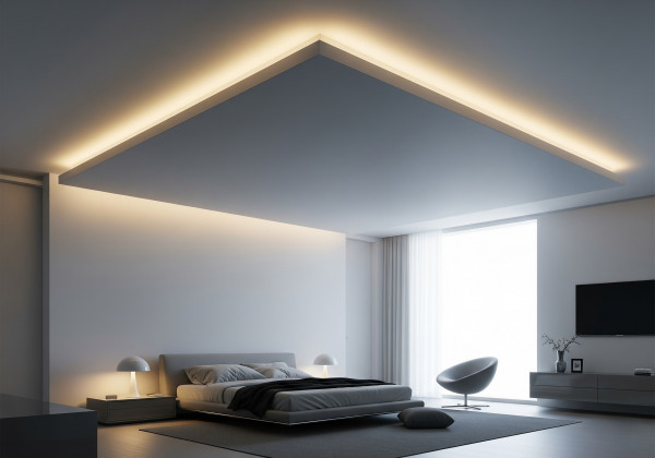 Потолочное освещение по периметру комнаты любого назначения создает контур света на стыке потолка и стеновой поверхности. Используется для создания специальных акцентов в интерьере дома или офиса.