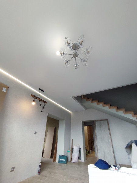 Парящие натяжные потолки смотрятся очень эффектно. Для их установки не нужна маскировочная лента. Главные особенности и преимущества: