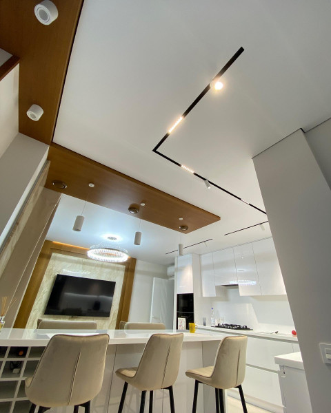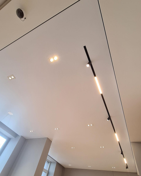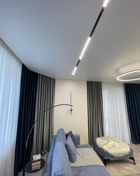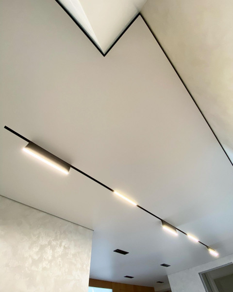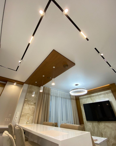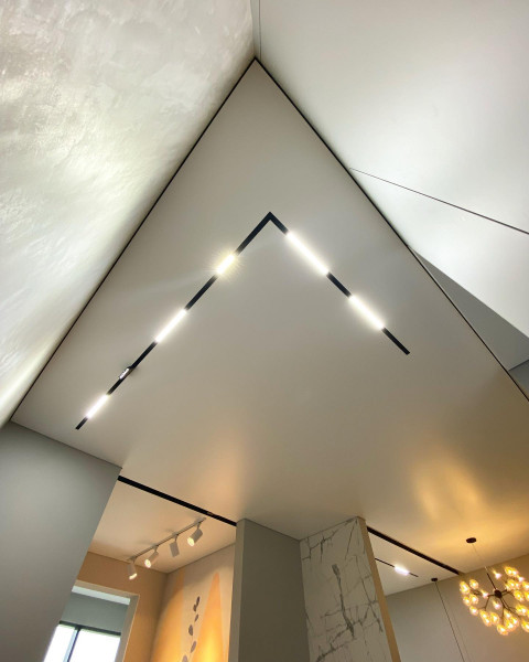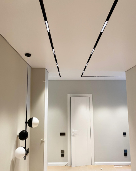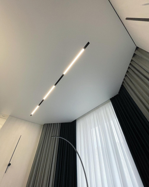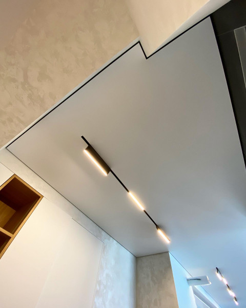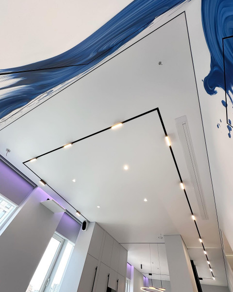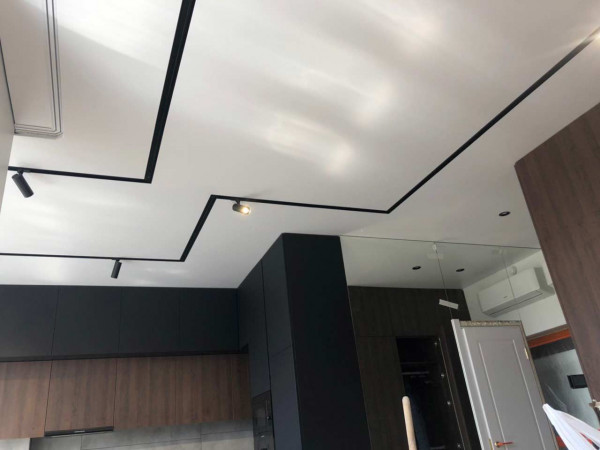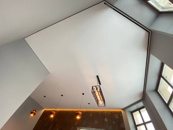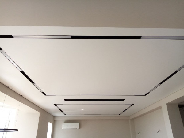 - Эстетика – демпферные натяжные потолки смотрятся очень красиво за счет минималистичного дизайна. Не требуют лишних элементов.