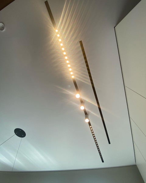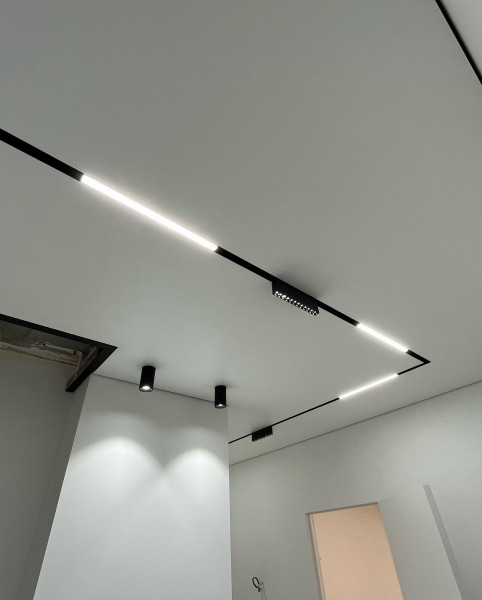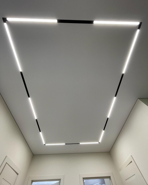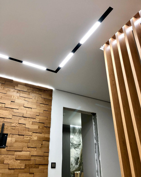 - Возможность интегрировать сложные световые системы – демпферный профиль хорош тем, что позволяет встраивать разные типы светильников.