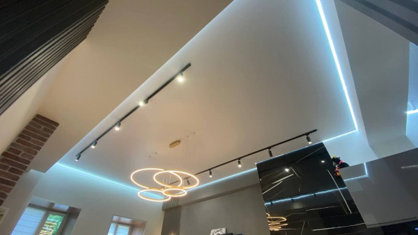 Один из самых стильных видов отделки дома – это современные натяжные потолки со встроенными треками. Такое решение применяется и для жилых, и для нежилых интерьеров. Оптимально для нескольких конкретных случаев: