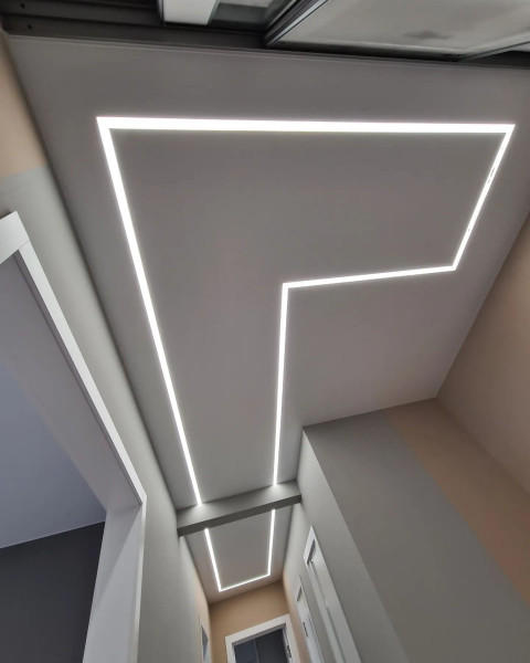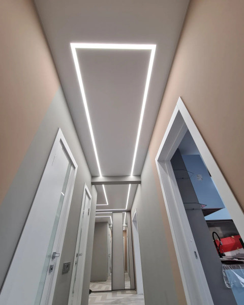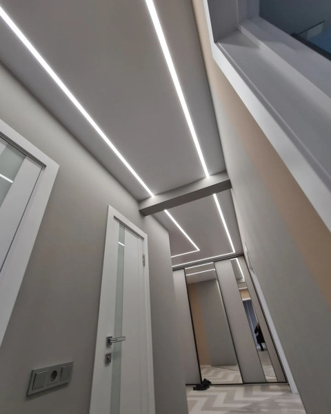 У натяжных конструкций из ПВХ или ткани, установленных в коридор, множество преимуществ.