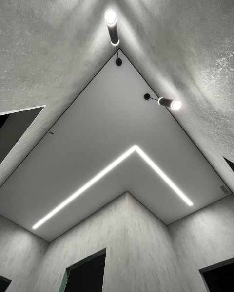 Натяжные конструкции из ПВХ или ткани подходят к любому интерьеру. Наши мастера установят классический белый потолок, яркий цветной или под бетон или дерево.